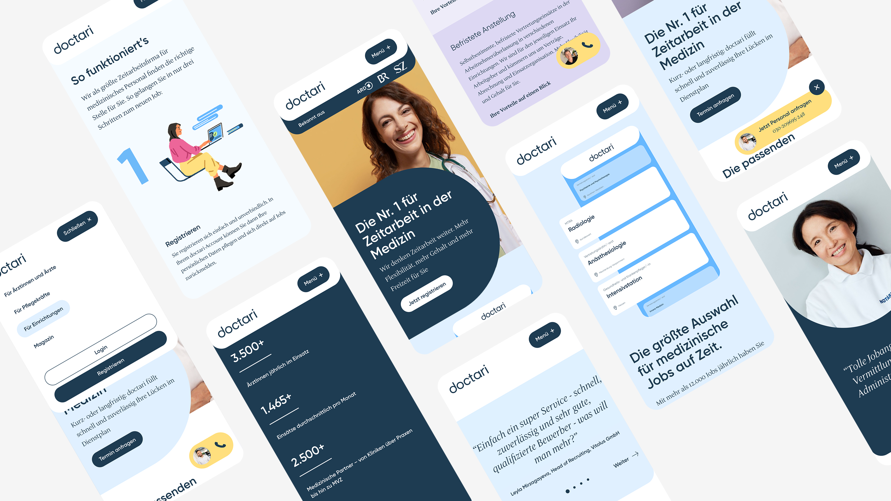 The healthcare industry is shaped by outdated working models that no longer match the increasing demand for flexibility, efficiency, and user-centric digital experiences. Doctari sought to redefine its role in this evolving landscape by sharpening its brand purpose and translating it into a cohesive, future-ready digital presence. The challenge was to articulate a consistent brand story, transform it into a unified visual and verbal identity, and redesign the flagship website around real user needs. In parallel, the team needed a scalable design system that could adapt across platforms and screen sizes.
