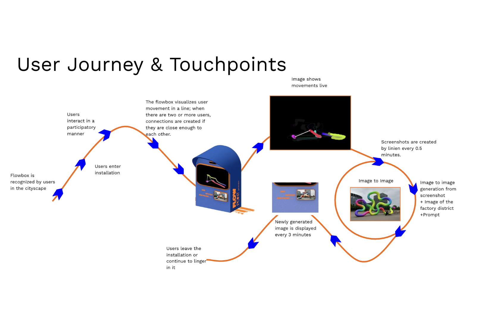 FlowPoint was developed during the Fraunhofer Summercamp 2025, a one-week interdisciplinary program under the theme "RECL:AI:MING THE CITY", bringing together students from technology, design, media, and urban planning to develop concepts for urban spaces alongside Fraunhofer researchers. At the final presentation, FlowPoint won the award for best presentation and concept, judged by a jury including representatives from the Fraunhofer IAO, the Deutsches Museum, and the Friedrich Naumann Foundation. The project was also featured in the Fraunhofer network magazine Quersumme, which described it as a concept that turns individual passersby into a visual collective and a temporary piece of public art.