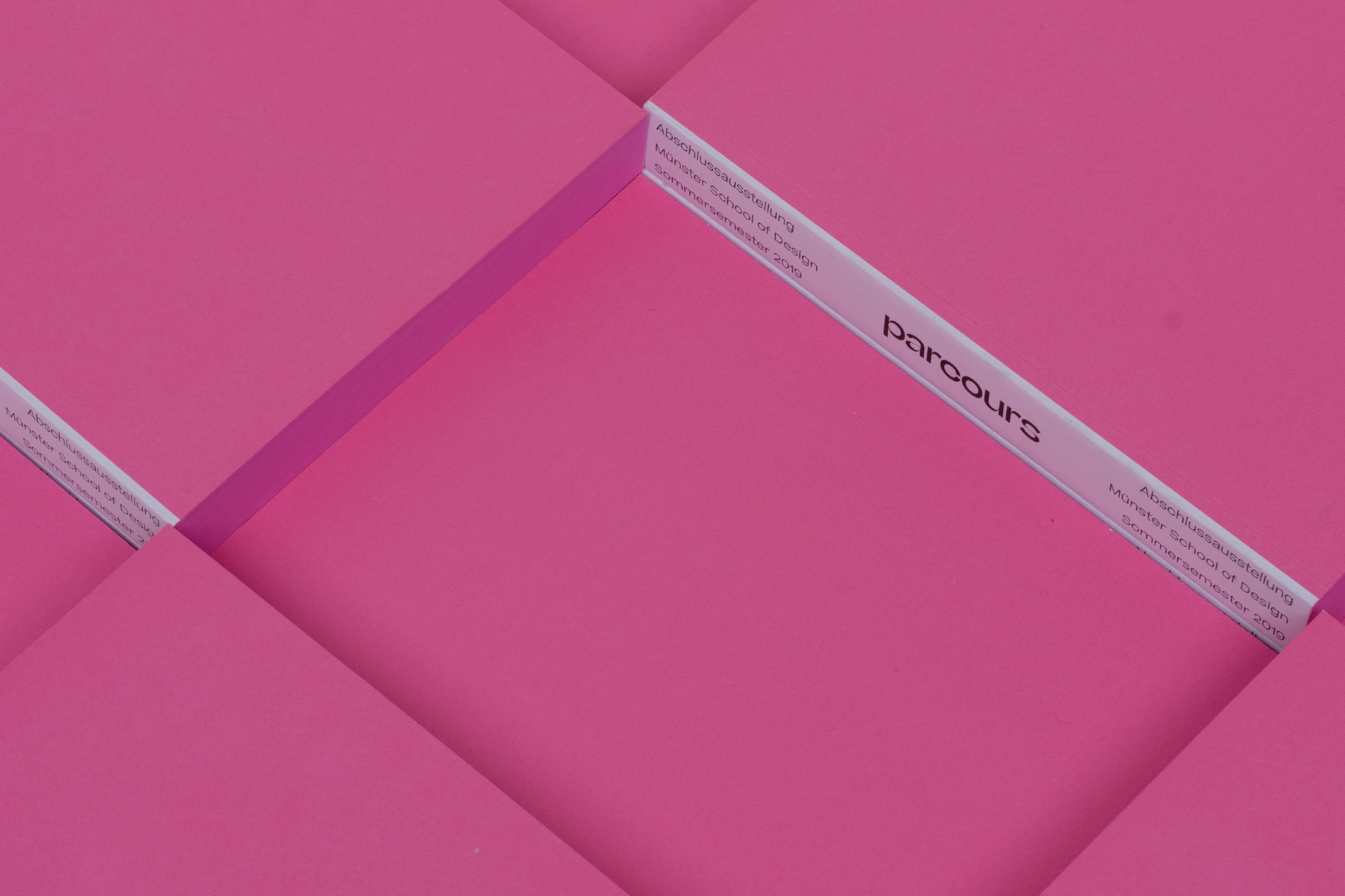 Parcours is the final exhibition at the Münster School of Design. A creative playground. A place where ‘work and pleasure’ can be mentioned in the same sentence. The cross-disciplinary project as an unconventional working environment. Not just a catalog for the exhibition, but an institution that has set itself the task of bringing ideas to life. A place to learn, a place to grow, and a place that is still growing itself. A goal, a dream with a deadline: the task is to visualize a complex chain of themes in the context of reflection and evaluation of creative narrative structures. Qualification and classification of the environment and target groups. Communication design and creative authorship to better bring together graduates, their themes, and their respective audiences.